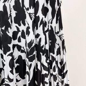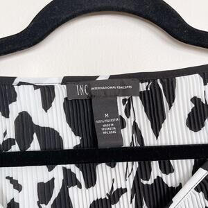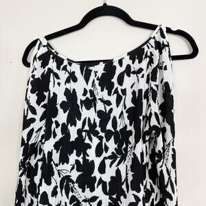 INC International Concepts Cold Shoulder Pleated Floral Blouse Black White M