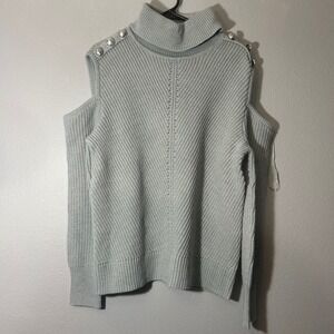 INC International Concepts Cold Shoulder Turtleneck Sweater Button Detail Size M