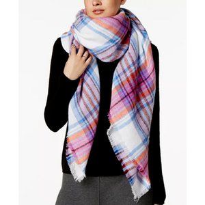 Game Day essential: INC International Concepts' cozy blanket wrap flaunts a versatile square shape and brightened plaid that's perfect with boots.