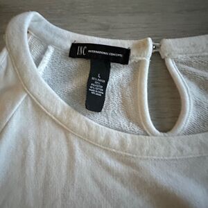 INC International Concepts Cols Shoulder LS Sequin embellished Top White L EUC