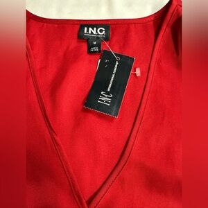 INC International Concepts Cranberry red surplice ruffle hem midi dress size M