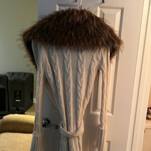 INC International Concepts Cream Cardigan with Brown Faux Fur