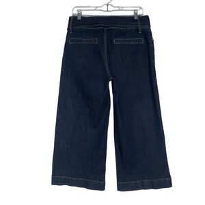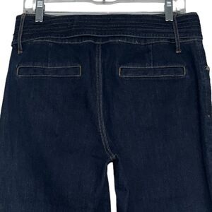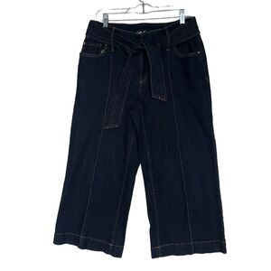 Stylish dark blue cropped jeans. Features a tie waist. Perfect for casual wear.