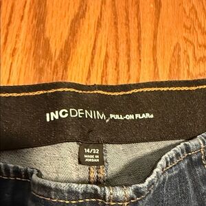 INC International Concepts Dark Blue Flare Jeans with Elastic Waist Size 14/32