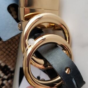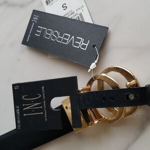 INC International Concepts Double Circle Reversible Faux Snakeskin/Cognac Belt S