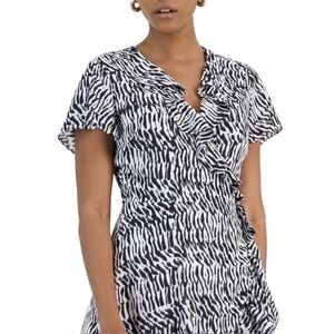 INC International Concepts Dress Flutter Sleeve Wrap Ruffle A-line