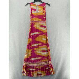 INC International Concepts Dress Women's Sz XS Pink Tie-Dye V-Neck Halter Maxi