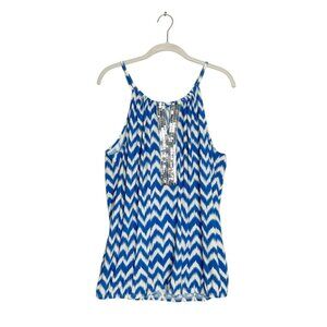 INC International Concepts Embellished Print Sleeveless Top in Blue/White- Sz XL