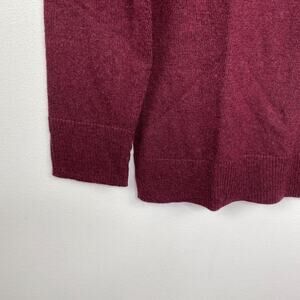Port burgundy red sweater. Rhinestone embellished neckline. Keyhole neckline. Long sleeves. Scoop neckline. Pullover styling.