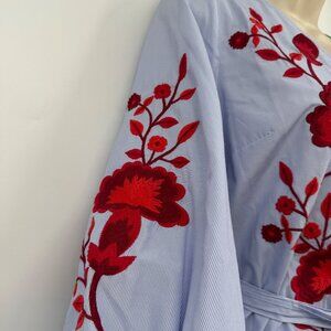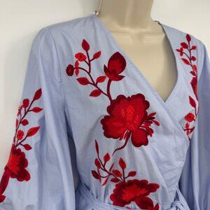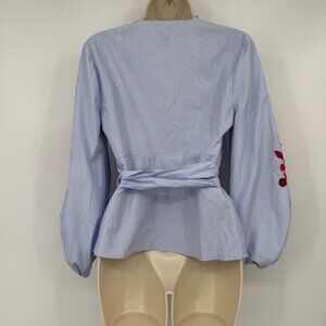 INC International Concepts Embroidered Wrap Top woman’s size small petite bishop