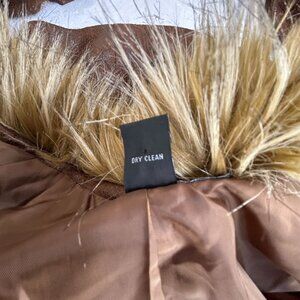 INC International Concepts Faux Leather Fur Collar Waterfall Jacket Medium Brown