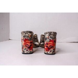 INC International Concepts Faux Snakeskin Chunky Heel Sandal Embroidered
