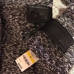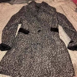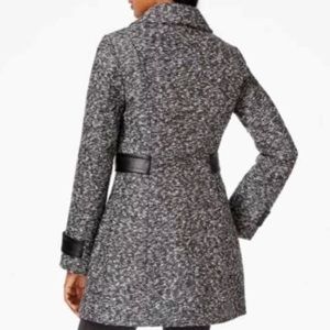 BRAND NEW; INC International Concepts Faux-Leather-Trim A-Line Tweed Coat