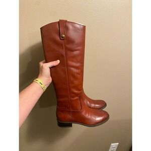 INC International Concepts Fawne Tall Leather Riding Boots Cognac Size 6.5 NWT