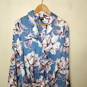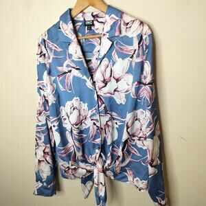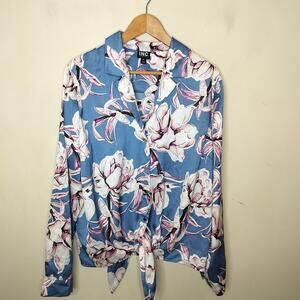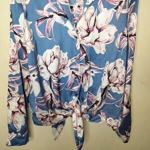 INC floral lon sleeve button up tie front top. Size XXL. Polyester. (22900)
