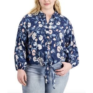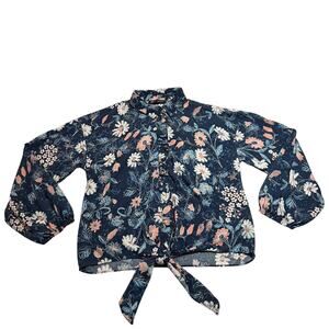 INC International Concepts Floral Print Button Up w/ Waist Tie Size Med Preppy