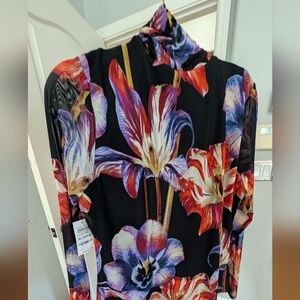 INC International Concepts Floral Sheer Lined Torso Sheer Mock Kneck Medium Nwt