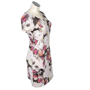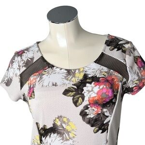 INC International Concepts Floral Short Sleeve Mesh Inserts Lined Dress Size M