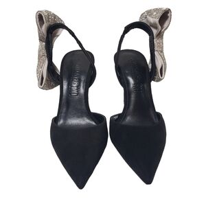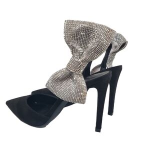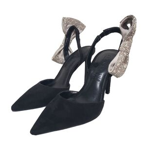 Condition: NWB - Forever Young Girl Black Closed Toe Pointed Formal Slingback Heels. Sequin Silver Bow Detail.