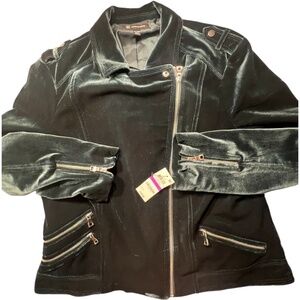 INC International Concepts Glam Velvet Green Moto Jacket Blazer Plus Size XXL. 2XL