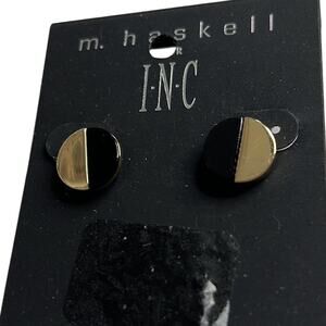 INC International Concepts Gold & Black Colorblock Stud Earrings, NWT