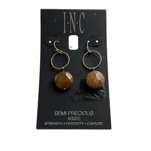 INC International Concepts Gold Dangle Earrings w/ Agate Stone, NWT