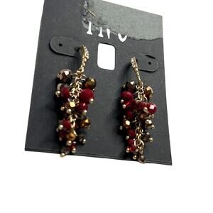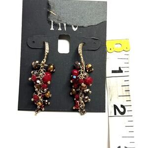 INC International Concepts Gold Dangle Earrings w/ Red Beaded Details, NWT!
