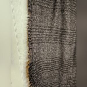 INC International Concepts Graphite Gray Brown Striped Rectangular Scarf 24 x 74