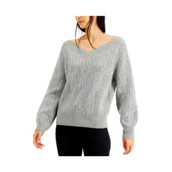 INC International Concepts Gray Sweater Rhinestone Knitted Sz Small