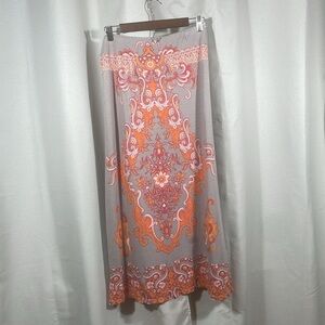 INC International Concepts Gray and Orange Patterned Skirt light weight fabric