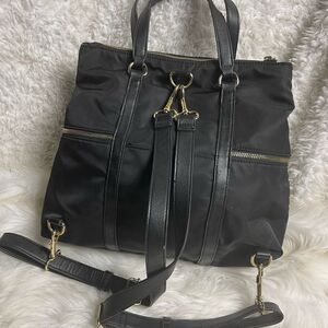 INC International Concepts Haili Nylon Convertible Backpack with gold tone hardwares.Two side zipper top zipper. The inside lining has a side zipper,four side pockets. Pre owned in good used condition signs of wear on the top handle of the bag see all pictures any questions please message.V1