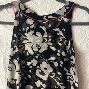 INC International Concepts Halter Top Black White floral pink trim mesh Medium M