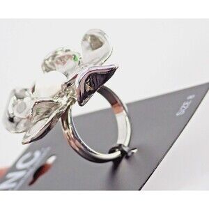 INC International Concepts I.N.C. Silver Tone Flower & Pearl Statement Ring Sz 8