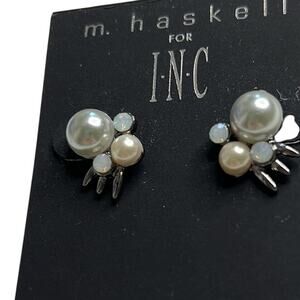 INC International Concepts Ivory & Silver Pearl Stud Earrings, NWT!