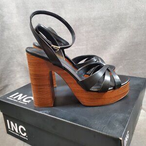 INC International Concepts Jacel Black Beauty Platform Sandals Size 8.5 M NIB