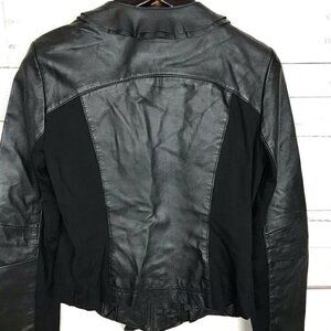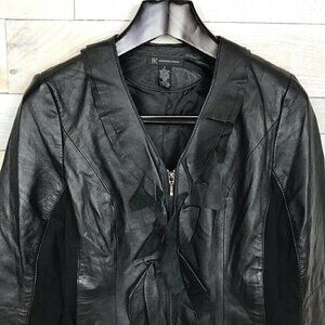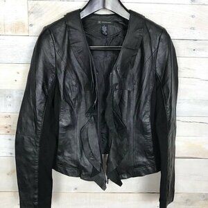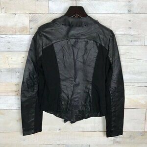 INC International Concepts Womens Jacket Black Leather Zip Up Ruffle V Neck Moto Motorcycle Biker S