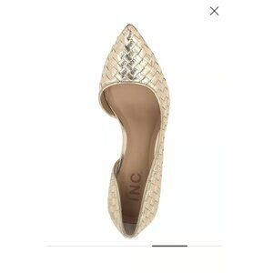 Add luxe intrigue to your evening look with the Kenjay d’Orsay Pumps by I.N.C. International Concepts. This sultry pointed-toe design features an embellished upper for glamorous sparkle.Gold Woven Design. A memory foam sock ensures comfort with every step perfect for parties or special occasions.