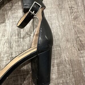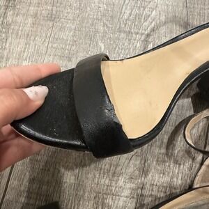 INC International Concepts Kivah Block Heels Open Toe Black Womens Sz 9M. good used condition. some markings inside the shoe, on front strap, and soles.