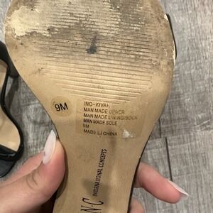 INC International Concepts Kivah Block Heels Open Toe Black Womens Sz 9M