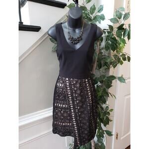 INC International Concepts Knee Length Dress Women 6 Black Lined V-Neck Back Zip