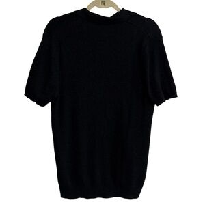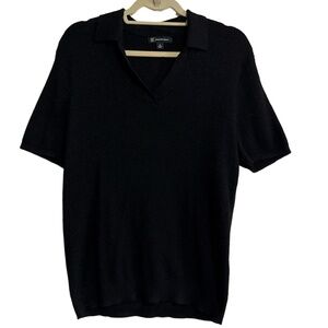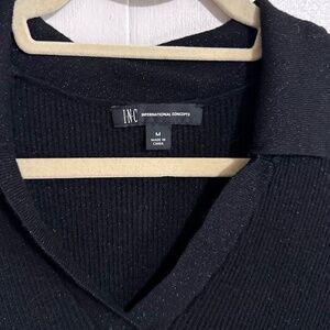 INC International Concepts Knit Polo Shirt Womens M Black Collared V-Neck Ribbed