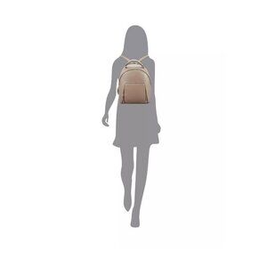 This bag features solid color faux-leather. Lots of compartments and pockets. Small style backpack.