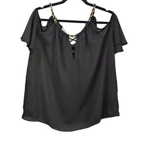 Trendy, top, blouse, shirt, cold shoulder, lace, chain, sexy, evening, party, cocktail, event, occasion, biker, moto, mobwife, Baddie, goth, Macy's, casual, chic,