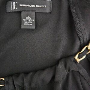 INC International Concepts Lace-Up Cold-Shoulder Chain Black Top Size L