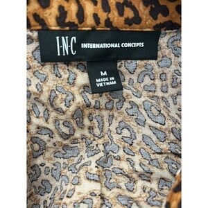 INC International Concepts Ladies M Long Sleeve Cheetah Blouse Ties Button NWT