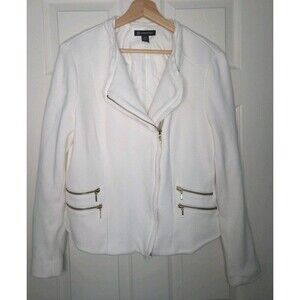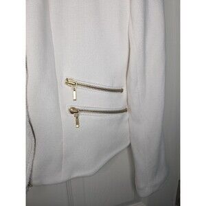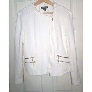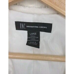INC International Concepts Lg Women Cotton White Poly Lined Jacket Gold Zippers