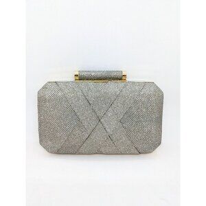 INC International Concepts Lindsayy XX lurex metallic clutch shoulder bag SILVER