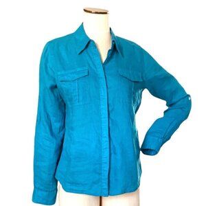 INC International Concepts Linen Button Front Safari Shirt Sz 8 Turquoise 208G