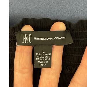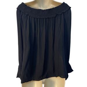 INC International Concepts Long Sleeve Off Shoulder Ruched Stretchy Top with Elastic Cuffs Color Black Size L