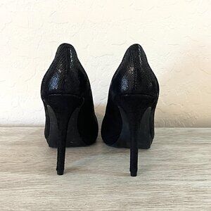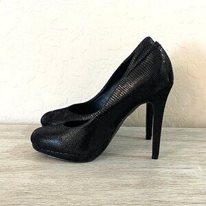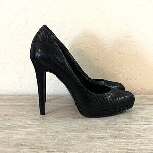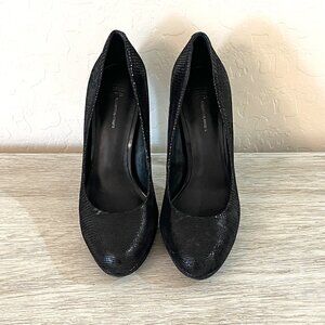 INC International Concepts Louie Black Leather Platform Heels Pumps 6 Worn Once